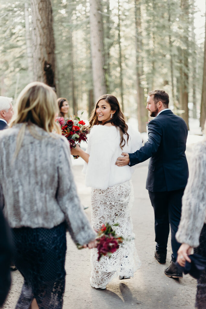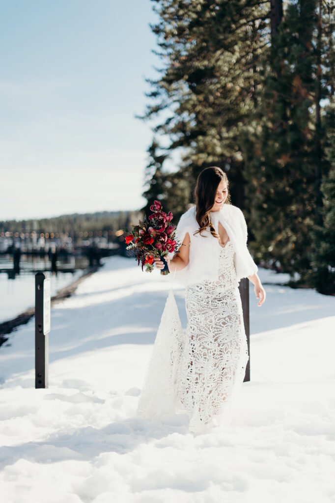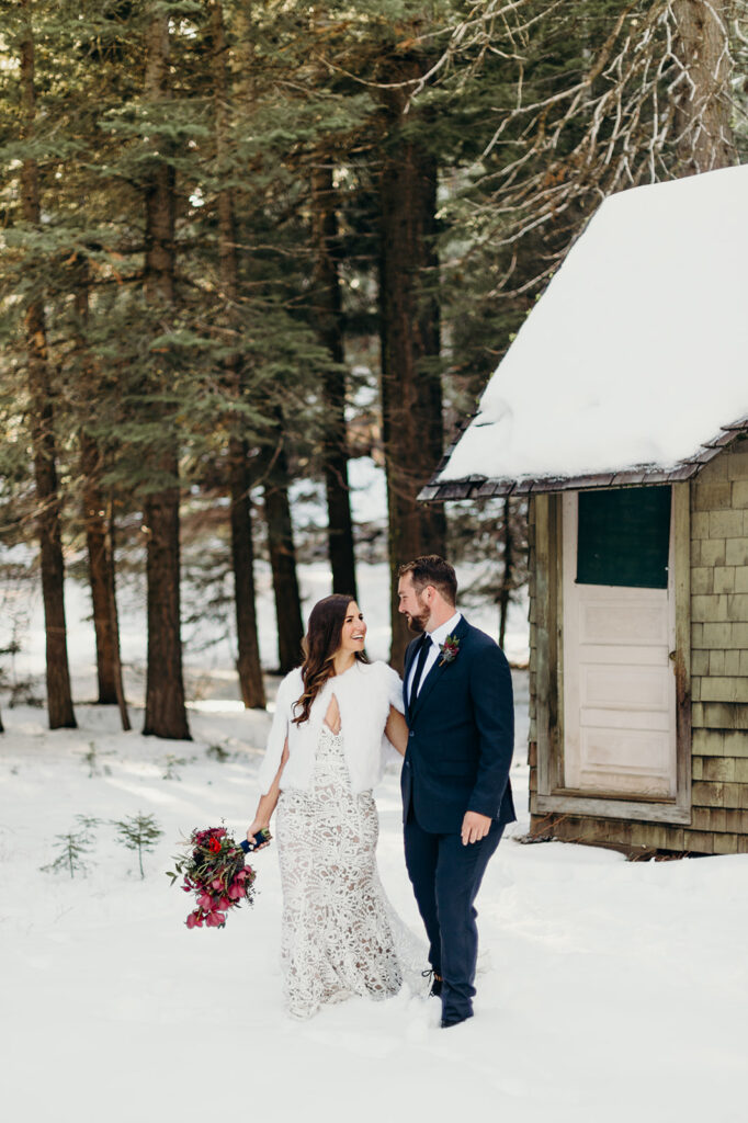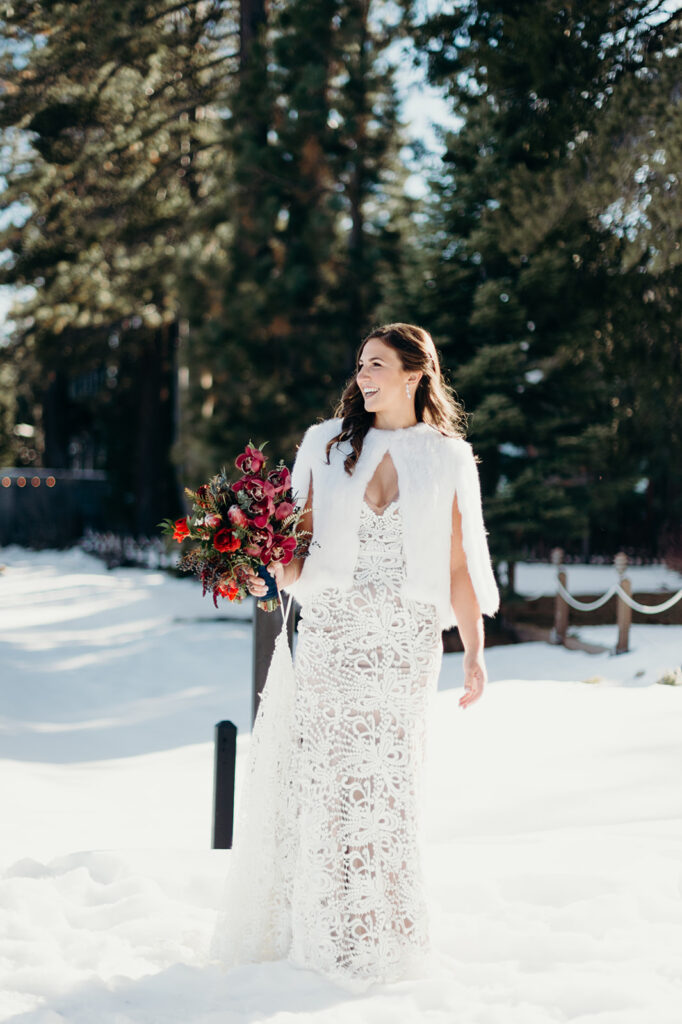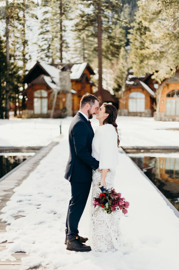 I still dream about this day! With snow covering the ground, and the sun high in a pale blue sky – it was absolute perfection for Emily + Steve. The pair met while skiing in Lake Tahoe, so there was no place better for them to exchange their wedding vows. x