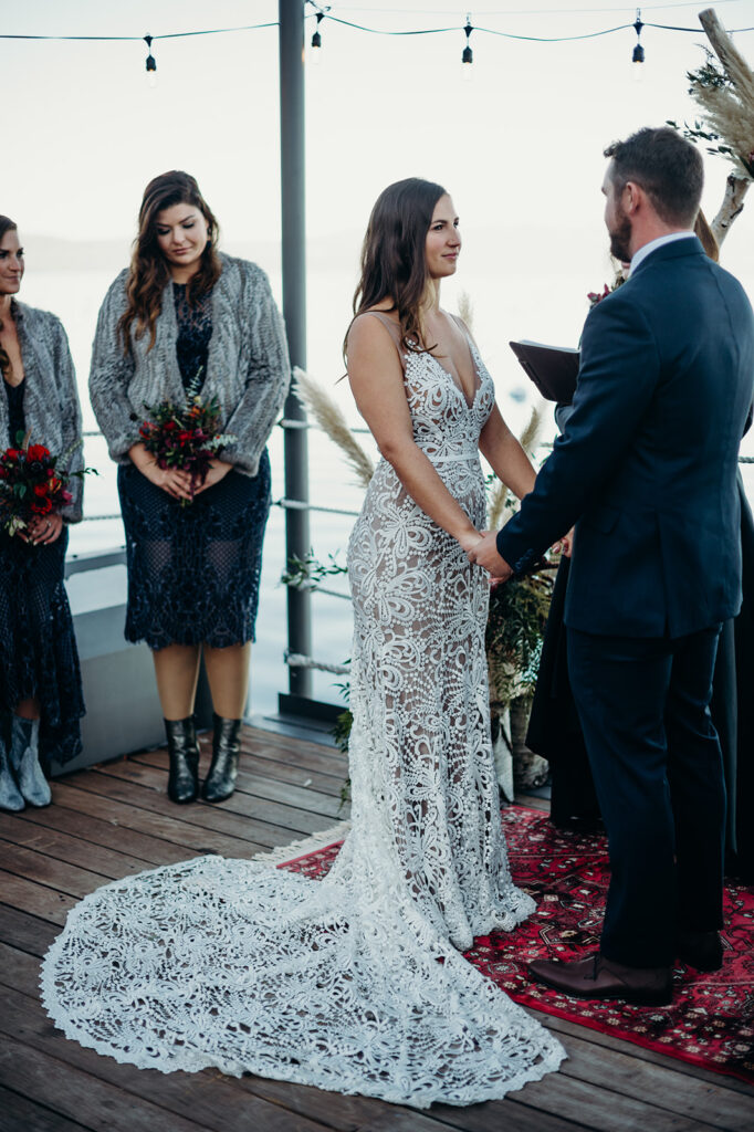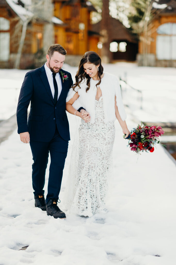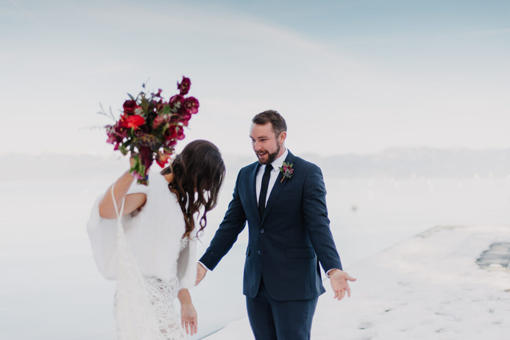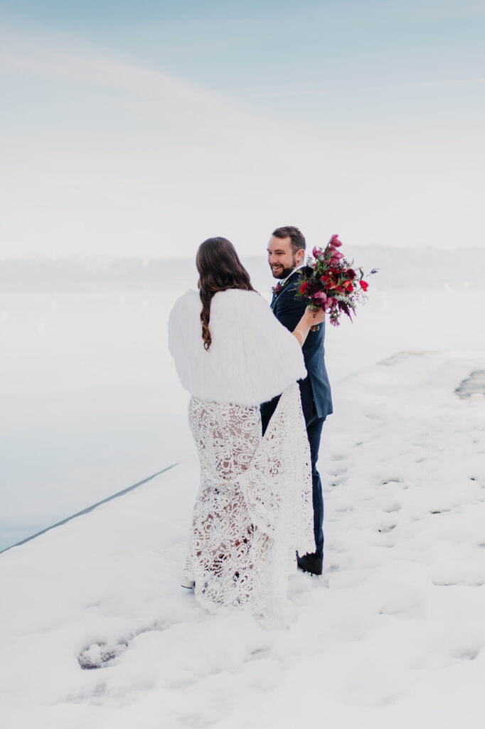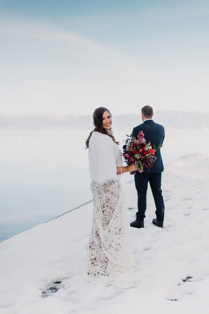 I still dream about this day! With snow covering the ground, and the sun high in a pale blue sky – it was absolute perfection for Emily + Steve. The pair met while skiing in Lake Tahoe, so there was no place better for them to exchange their wedding vows. x