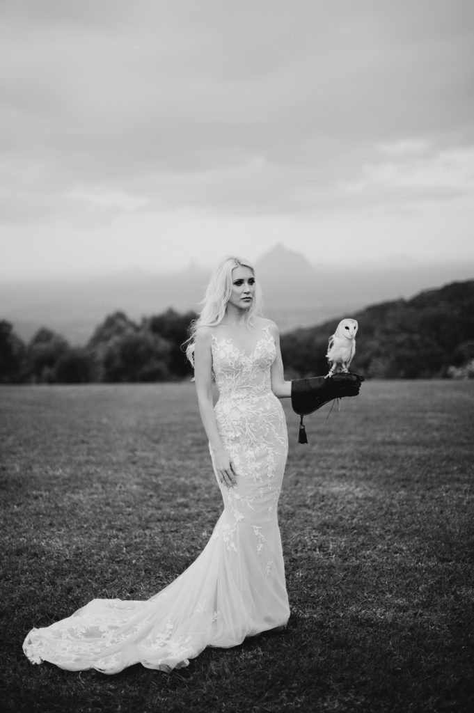 Estelle & Matt’s divine Maleny Retreat wedding was planned from afar, with the couple making all the arrangements from their home in Darwin. Quite impressive, considering how beautifully it all came together. With that gorgeous George Wu gown, groom attire straight out of Peaky Blinders, and even a barn owl stealing the show as ring bearer. It was a real treat to capture.