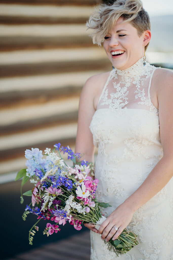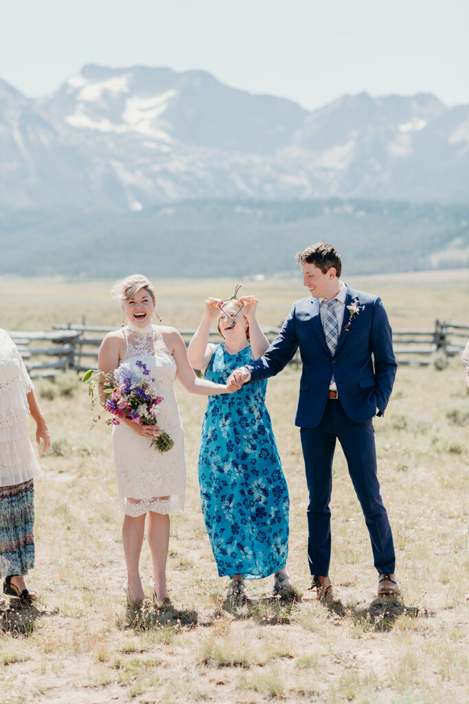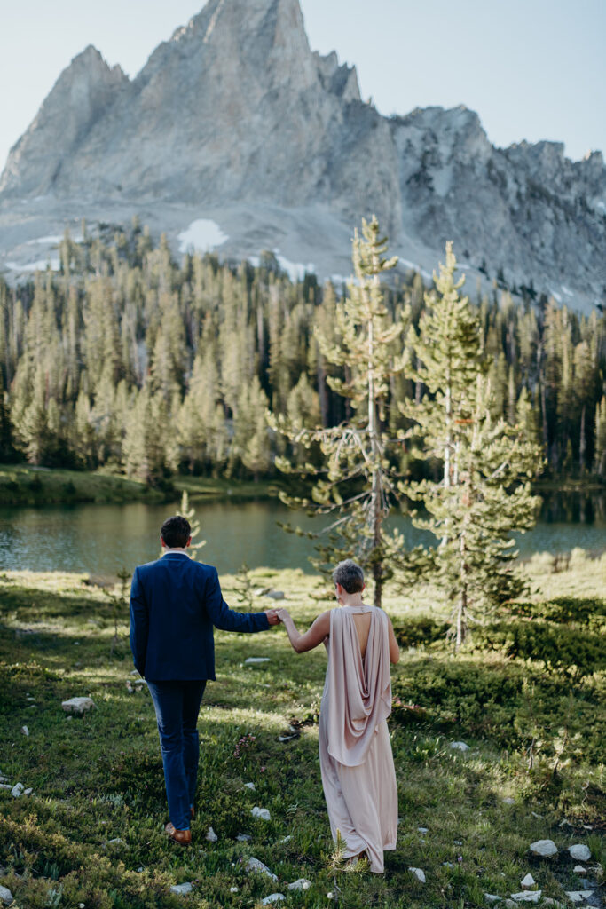 We were greeted at the bottom of the mountain by Michelle & Luke’s family, and they were wed in an intimate ceremony with the epic Sawtooth Mountains as our backdrop.