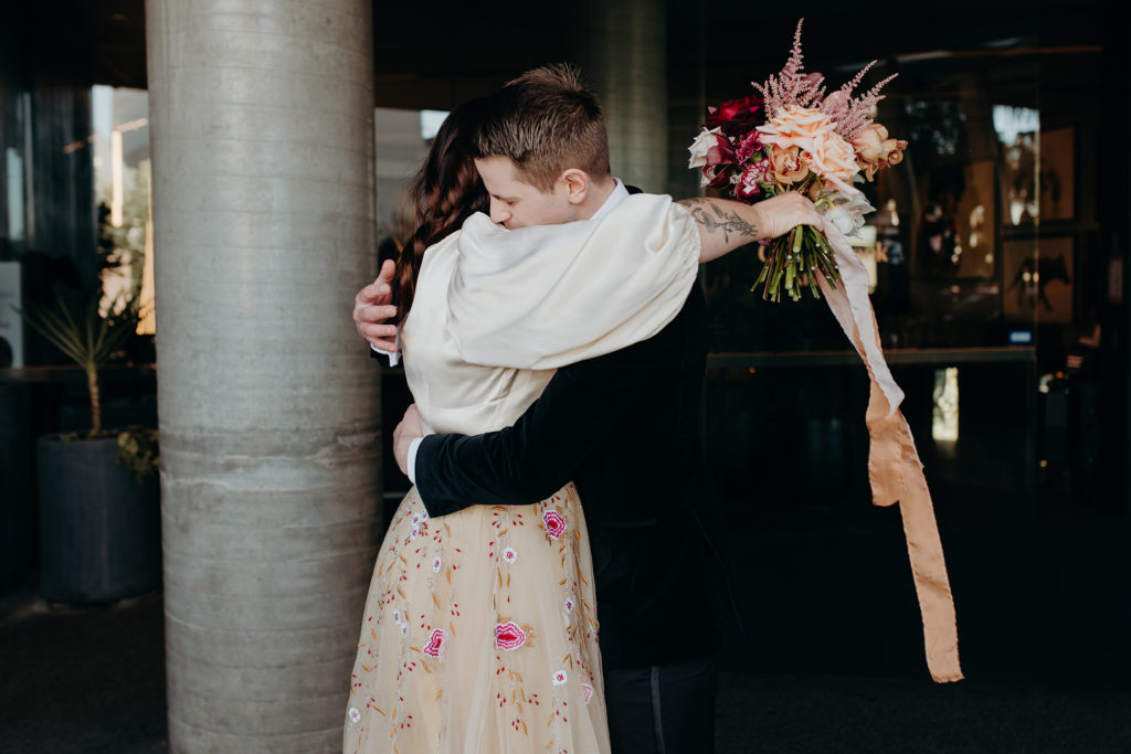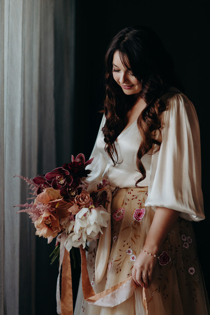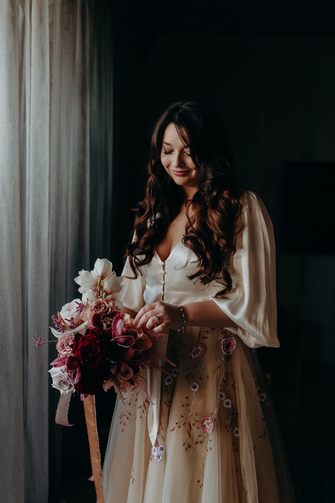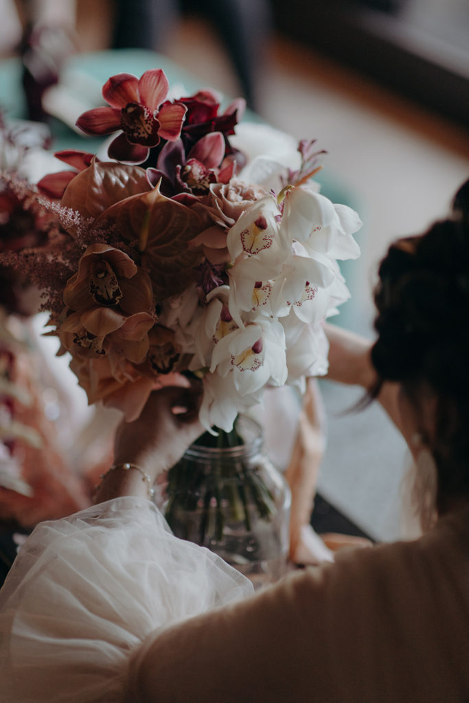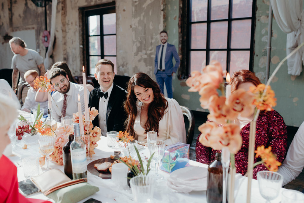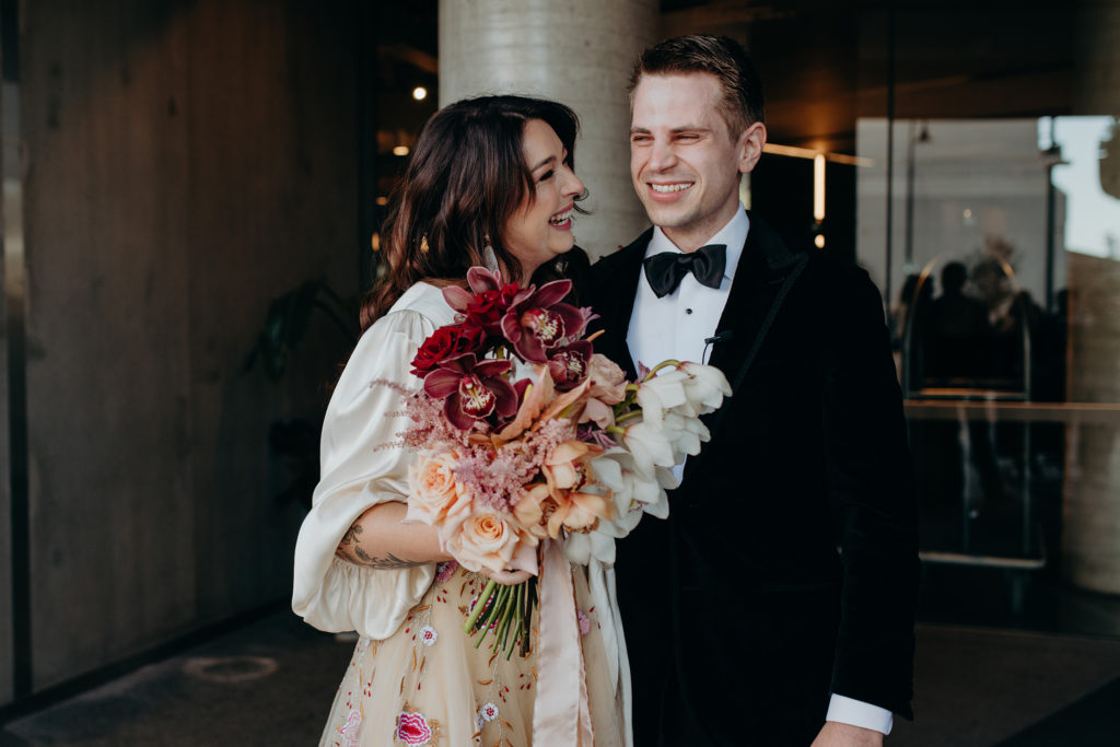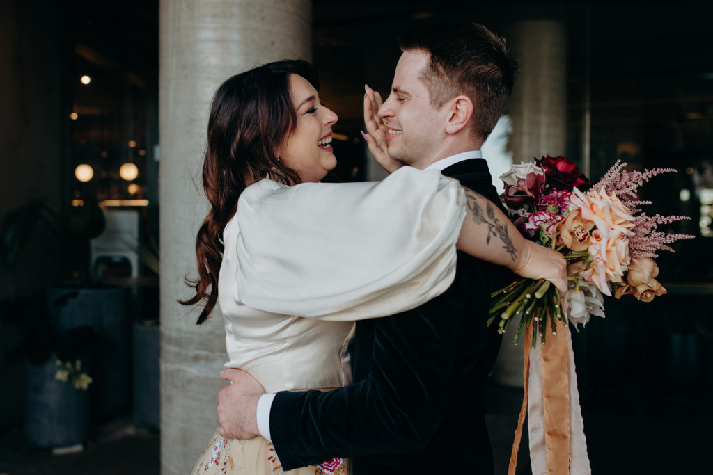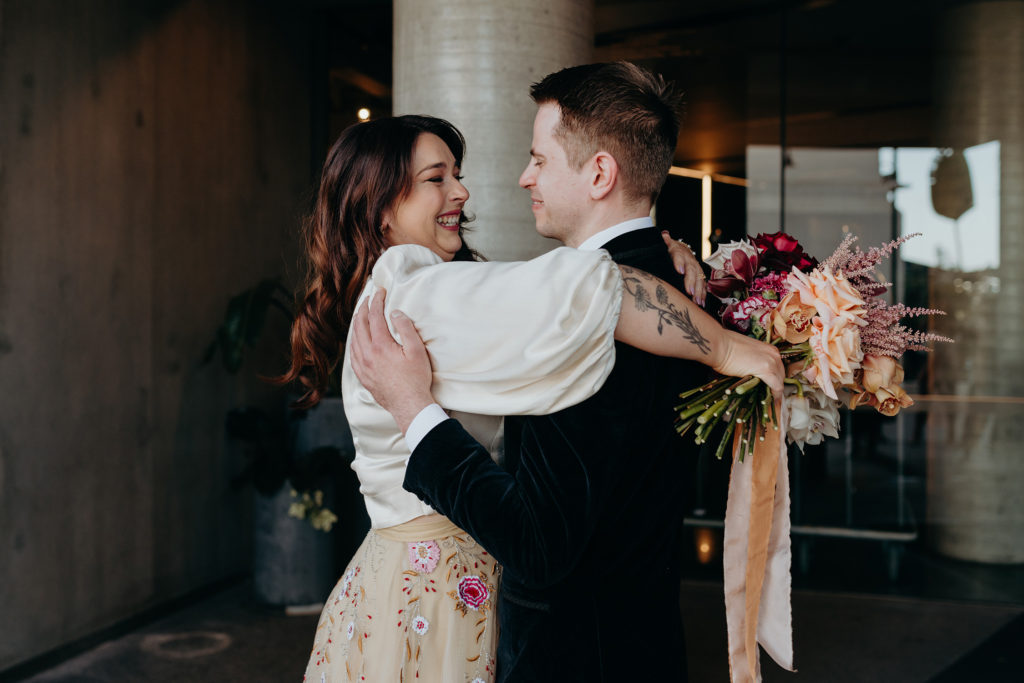 On the morning of Tracey & Dom’s wedding, a snap lockdown was called… The lockdown was to begin at 4pm. Tracey & Dom’s ceremony was scheduled for 3pm. With much of the venue already set, and hair & makeup well underway, Tracey & Dom made a swift decision to pull their ceremony forward to 12 noon, and squeeze their wedding into a love-filled 4 hours.