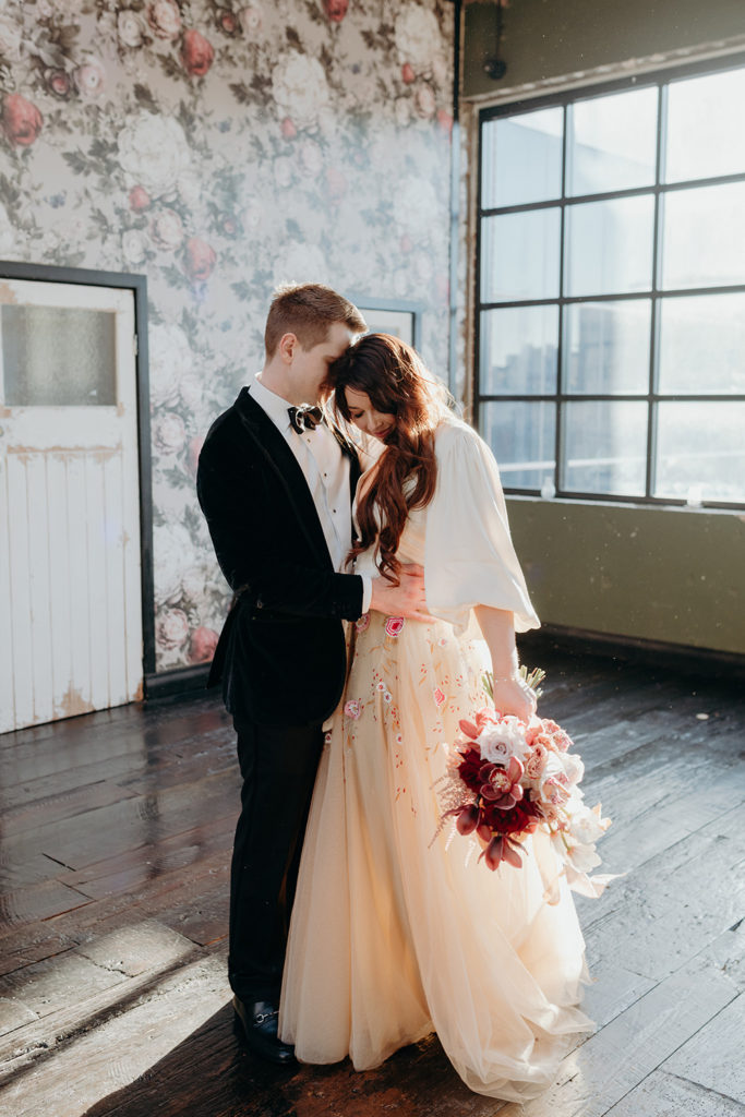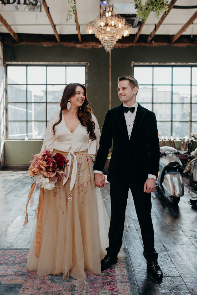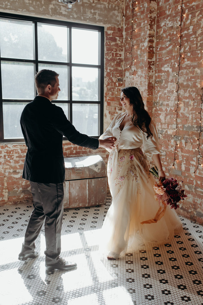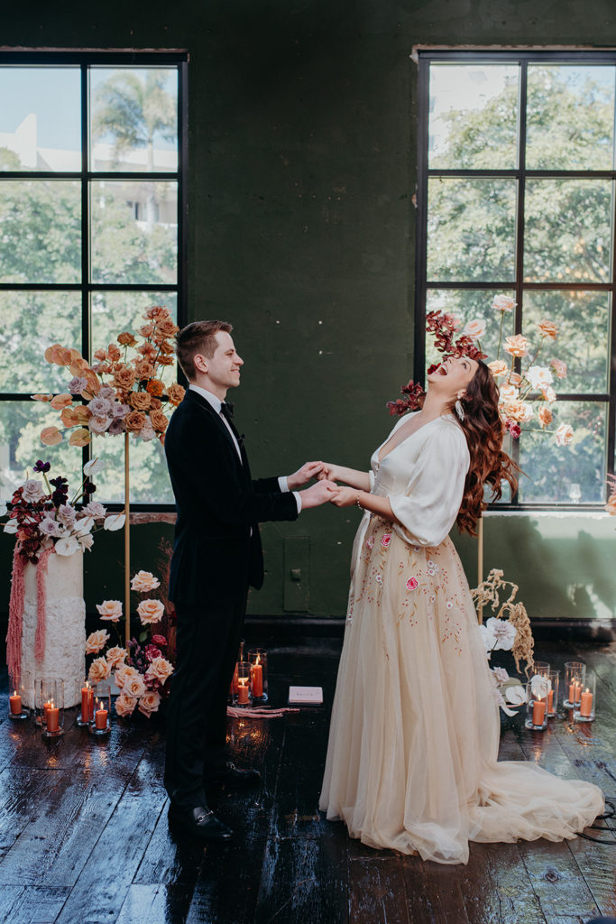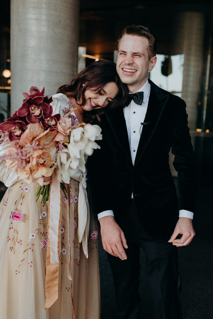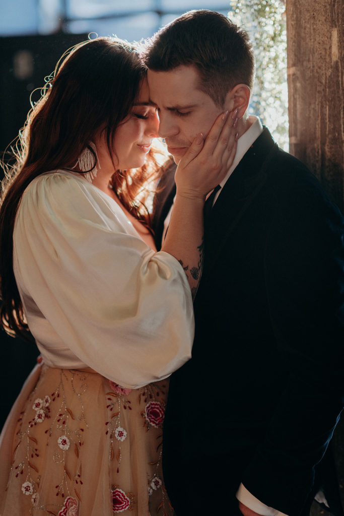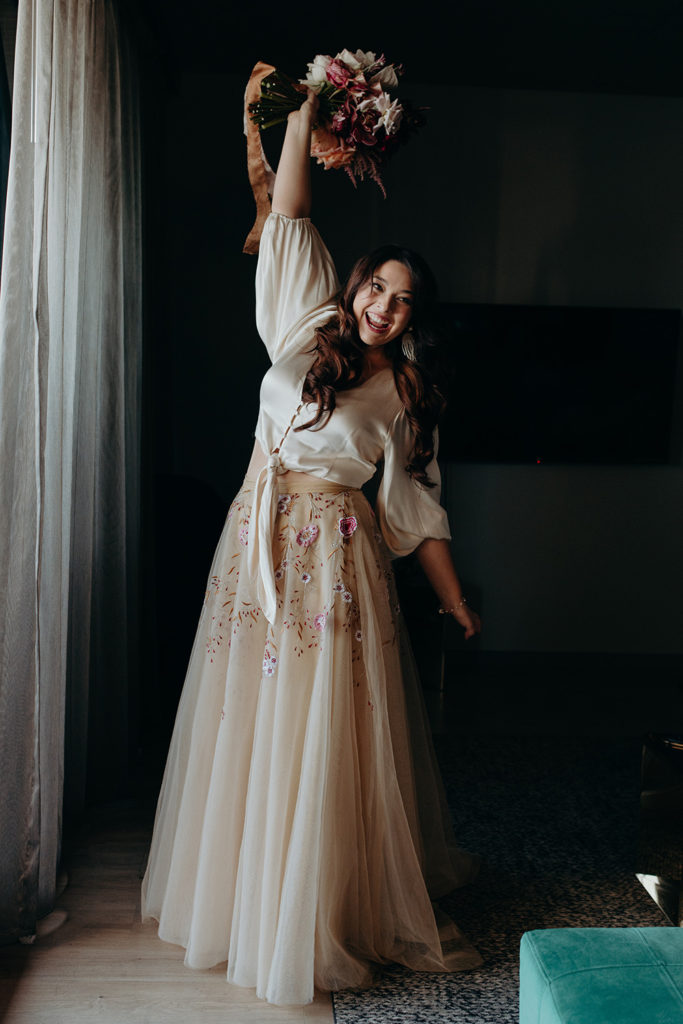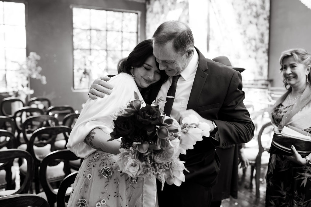 On the morning of Tracey & Dom’s wedding, a snap lockdown was called… The lockdown was to begin at 4pm. Tracey & Dom’s ceremony was scheduled for 3pm. With much of the venue already set, and hair & makeup well underway, Tracey & Dom made a swift decision to pull their ceremony forward to 12 noon, and squeeze their wedding into a love-filled 4 hours.